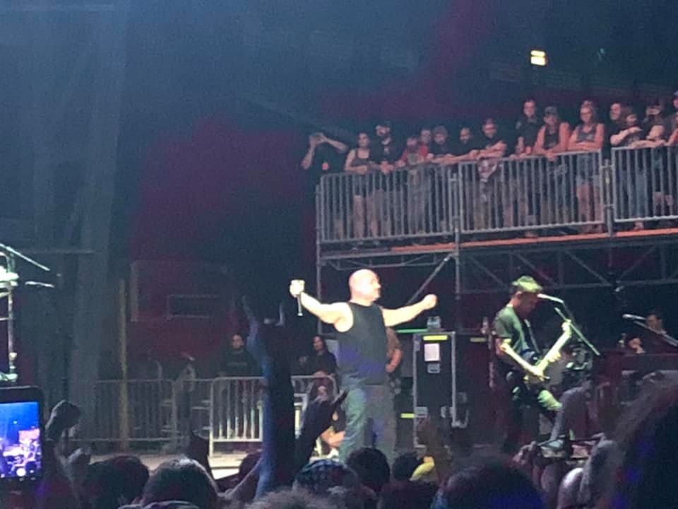 Day 2 comes and everything was turned up past 11. Many Disturbed fans eagerly awaited their headliner for the night with so many awesome bands to keep them busy throughout the day. With bands like the Black Dahlia Murder and Killswitch Engage tearing up the echo stage with their relentless aggression and, and bands such as Movements and Don Broco serenating any listener at the Wave Stage, the Main Stage was a rollercoaster of different sounds and vibes. Black Coffee opening the stage with their humor and classic and edgy hardrock sound, followed by The Fever 333. I mentioned bands utilizing every inch of the stage during their performance but The Fever 333 took it one step further, not just utilizing every inch of the stage, but how about every inch of the stadium?! Vocalist Jason Aalon Butler became one with the crowd and jumped off the stage and interacted with everyone with in his radius. With their sound of hardcore punk, it was something familiar, yet fresh that hyped up the audience for the rest of the day. Next we get Gojira! We finally get some pyro and boy did they know how to use it. With their sound of groove, prog, and all out aggression, the flying wails delivered everything we all know and love with a short but sweet 7 song set. Add Randy Blythe of Lamb of God singing Backbone with them and you got the ultimate Gojira set. In This Moment later took over the stage, and like what Avatar was able to do by transforming it to their own atmosphere, In this Moment took that a step further. With vocalist Maria Brink with her signature scream that will horrify you to the core, but the beautiful stage presence and atmosphere is able to pull you in whether you want to or not. The brutality did not stop there because as the sun began to set, the Richmond Virginia legends, Lamb of God took the stage. Opening with classics such as Omerta, Ruin and Walk with Me in Hell, the circle pits and moshpits surged throughout the stadium floor. Nowhere was safe. As the fog rolled in from their backdrop, and the sun began to set, the darkness was locked in and the brutality was here to stay. Ending with Laid to Rest, and Redneck, Lamb of God furthers demonstrates that no matter how many times you have seen them, you will never know what to expect. Papa Roach would soon follow with a blistering 14 song set. Opening from one of the songs that pretty much defined Nu Metal, known as Last Resort, we got ever side we love from Papa Roach, from the tracks of aggression to their tracks of tenderness such as Scars. Add mesmerizing production to go along with their set, Papa Roach made sure that no matter what side of the stadium you were in, or how far you were, you were in their world and they welcomed you in it with open arms. From the lights, to the songs, to Jacoby’s stage presence, the engagement was on point for all 14 songs of their set. As the sky turned black, and we waited for disturbed, we get a quick performance from the one and only Andrew Dice Clay for some laughs to warm us up for Disturbed. After Clay left the stage, the lights dimmed, and Disturbed takes the stage. Opening with one of their new songs, Are you Ready, to classics such as Prayer or Stupify, there was way more than Ten Thousand Fists raised in the audience. We really were able to experience all sides of Disturbed with their groovy side with songs such as The Game, powerful side with a song like Ten Thousand Fists, to more sensitive side with songs such as A Reason to Fight, Hold on to Memories and The Sound of Silence. As mentioned in our review of Disturbed’s performance at Madison Square Garden this past winter, David was able to make a heart touching speech about those struggling with addiction and depression. It was very appropriate being that on this day, it was the two year anniversary of Chris Cornell’s death, as well as the day The Prodigy was supposed to play at Sonic Temple. Disturbed is a band that is not only able to give someone in the audience a sense of power, but the feeling of knowing that they are not alone in this crippling battle inside. Ending with the song we all know and love, Down with the Sickness, we ended day two with an intense pit and a high note as we walked off into the light of the full moon.