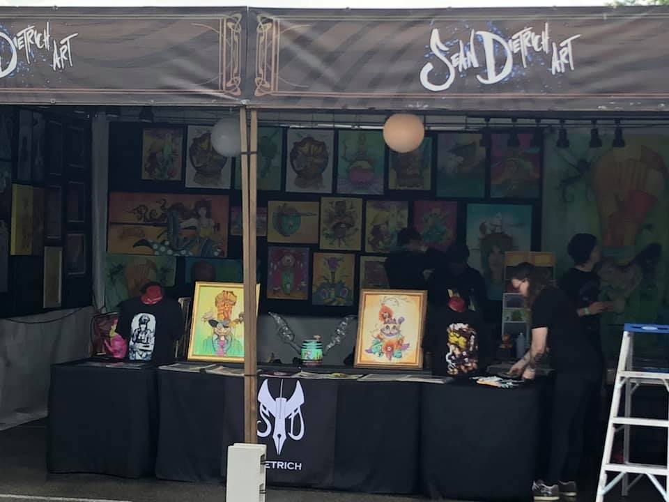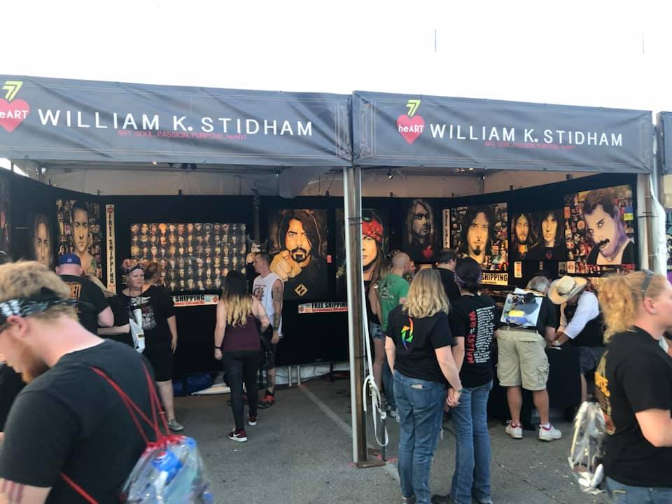 Before we talk about the bands and their performances, there was so much more to experience at this festival alone. While there were 3 huge stages that delivered the ultimate soundtrack to this experience, in between them was artwork that showed that rock N roll is just as important visually as it was sonically. The artwork of William K. Stidham had portraits that would stare you in the face just as much as the music would hit you there. Butch Lotskin bringing color in the air. Roadrunner Records had their booth showing the horrifying, yet beautiful retrospective of Slipknot and getting a great early experience of their new album, We are Not your Kind, and so much more. A booth full of musical gear from classic guitar brands that contribute just as much to the world of Rock and Heavy Metal such as ESP or PRS, all with gear available to try and demo almost felt like Sonic Temple was able to bring a chunk of Namm with them. While we go to a show to throw up horns and let out aggression in the pit, there is nothing like some great laughs to go along with it. At the Spoken Word Tent, we get to share an amazing and interactive experience with classic comedians such as Andrew Dice Clay, Craig Gass and Shepel Lacey. Once you entered the security gates, you were immersed into a full atmosphere of creativity and expression, even before the bands were playing. All forms of the arts regardless of what medium it was, was embraced and celebrated. This event showed the beauty of art and how creating something can result in an experience that one can share with people listening or seeing.
