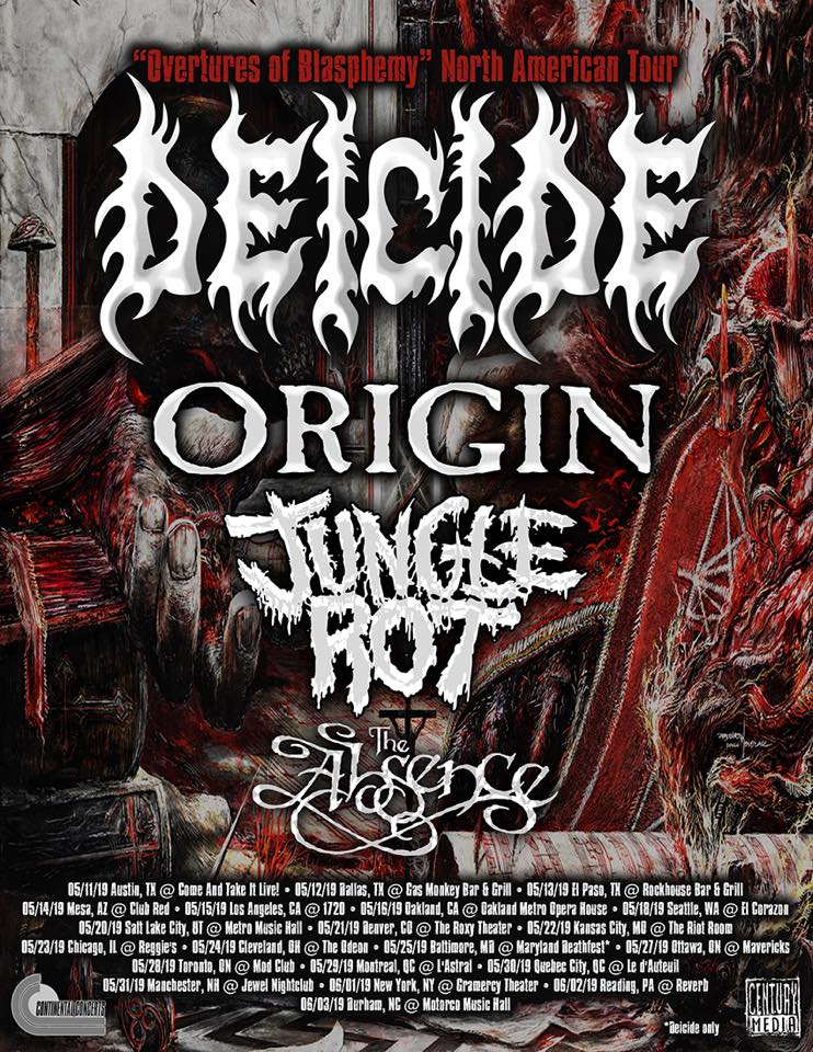 On Saturday, June 1st at Gramercy Theater, we had Deicide performing at Gramercy Theater with Origin, Jungle Rot and The Absence. When it comes to satanic death metal, one of the first people we can think of is the Florida man with the upside down cross on his forehead, Glen Benton. From classic from albums such as Once Upon a Cross, In the Minds of Evil, and their newest album, Overtures of Blasphemy ranking up there, there was no better way to celebrate month number 6 in NYC.