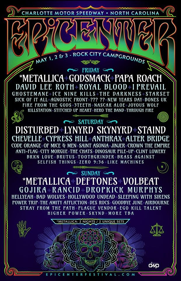 While this picture of the tour flyer should be enough to convince you to get down to North Carolina for Epicenter festival, there is so much more than two nights of Metallica as well as so many other legends such as Disturbed, Deftones, Papa Roach, Gojira and more.