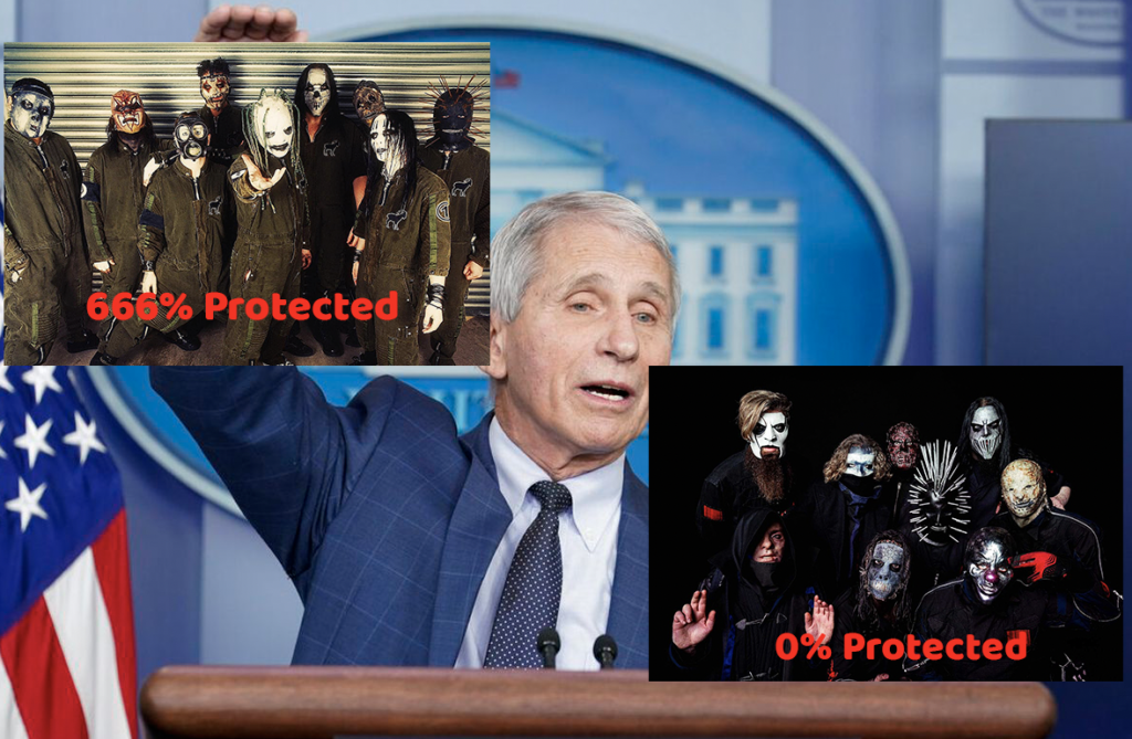 Dr Anthony Fauci has stated that Slipknot masks are protective against Covid 19 but suggests that he uses masks from the Iowa era of the band, rather than masks from their current album We Are Not Your Kind. He sites having Paul Grey and Joey Jordison in the band at that time makes for intense rhythmic protection as well as Corey Taylor’s current mask being totally stupid.