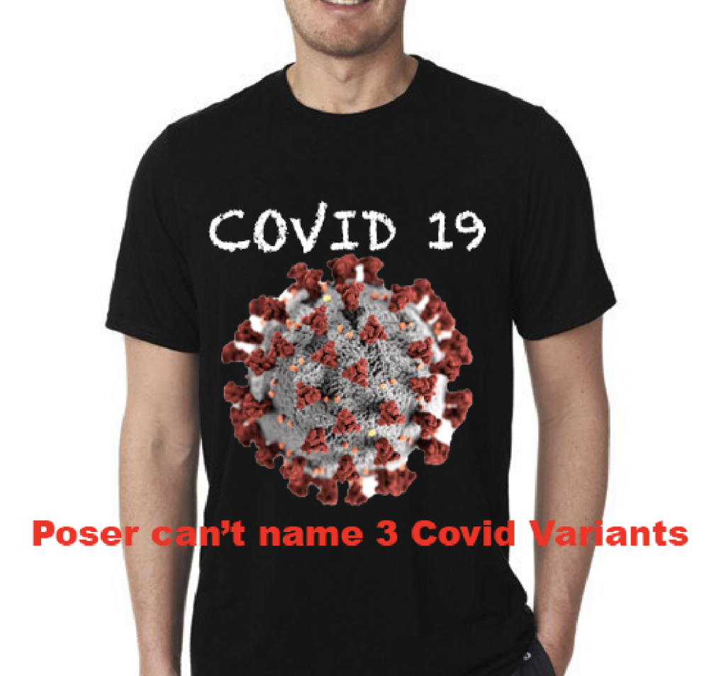 Poser in Covid Shirt can’t name 3 Variants